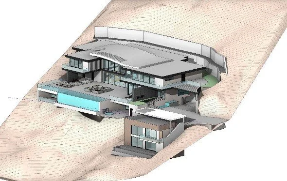 A new Type VB sprinkled single family residence is intended to be constructed on a 42,798 square feet lot. The proposed 2-story building with basement will have a residential floor area of 16,887 sq. ft. and the guest house with approximately 2,000 sq. ft. The owner’s property spans two jurisdictions, the main house will be constructed under Los Angeles Jurisdiction and the guest house will be in West Hollywood Jurisdiction.