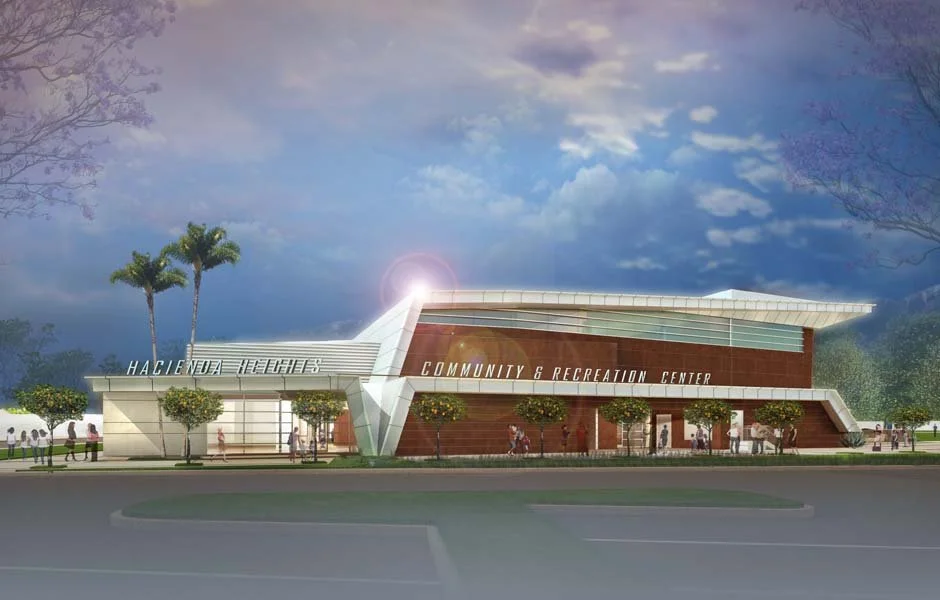 The County of Los Angeles entered into a ground lease agreement with the Hacienda La Puente Unified School District to develop this 21,000 square foot facility located at a former school site of the district, The Hacienda Heights Community and Recreation Center. The facility will house a multi-purpose room with a stage that will accommodate performance style seating for up to 539 people. This large multi-purpose room can also accommodate banquet style seating for up to 400 people. In addition, it will also include a small multi-use room, an arts and crafts room, computer room, and catering kitchen. The site will also include recreational park amenities such as walking trails, fitness stations, BBQ areas, picnic tables, and lawn areas for outdoor gatherings and activities. The construction cost is estimated at approximately $21 Million.