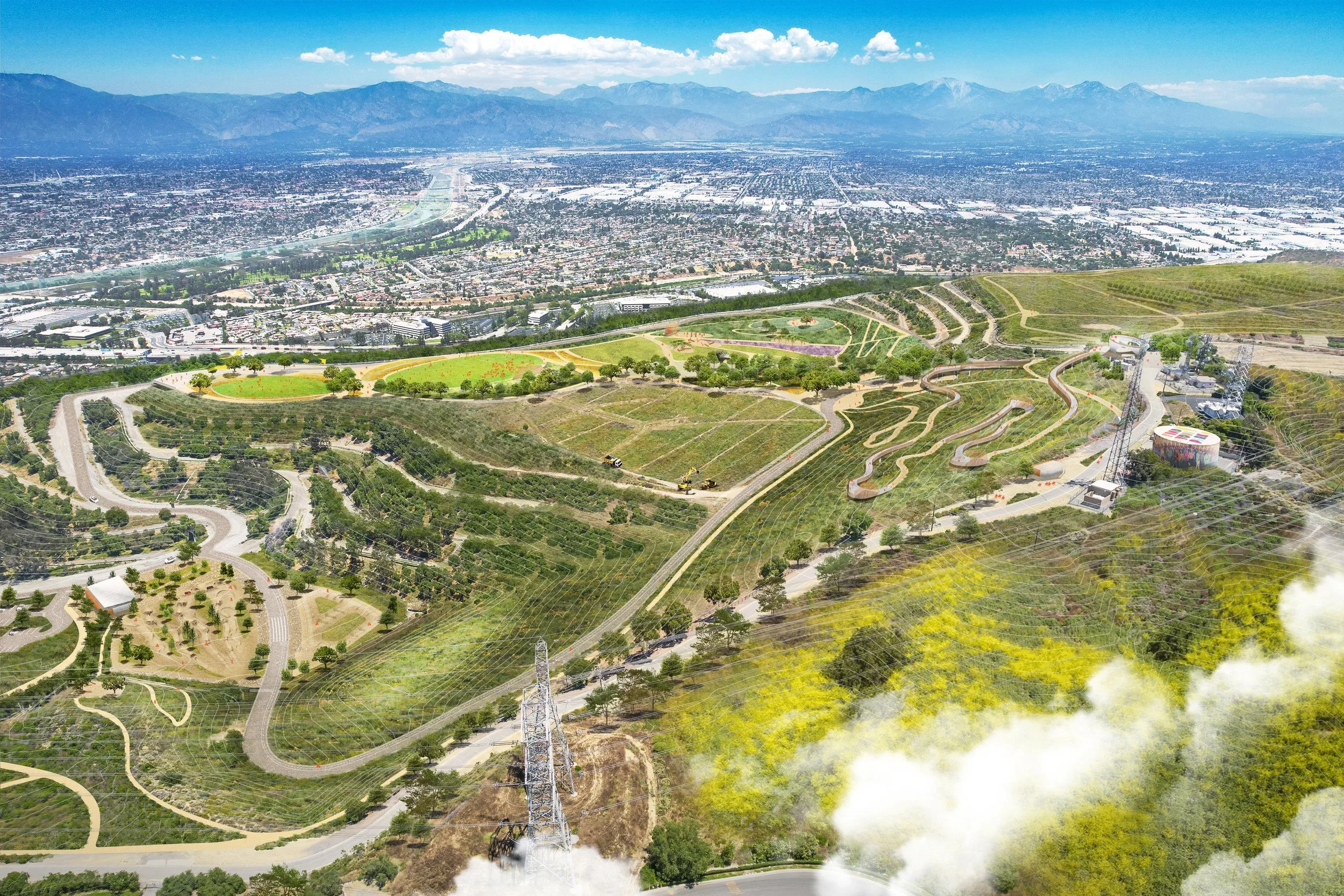 The Puente Hills Regional Park Project will deliver components of the Board-approved Master Plan, and the 2017 Transportation Management Plan. It will encompass 142 acres, and will include recreational elements such as a park loop road/trail, accessible trails, trail relocations and improvements, Southern & Eastern Deck loop trails, stair climbs, and equestrian staging. Additional Western Deck amenities will include a bike skills area, picnic areas, and nature education area. Improvements to selected non-fill areas will include an Entry Plaza, Visitor/Interpretive Center and administrative offices, Scenic Overlook, Maintenance and Operations (M&O) building, storage and maintenance yards, and various park infrastructure upgrades.
